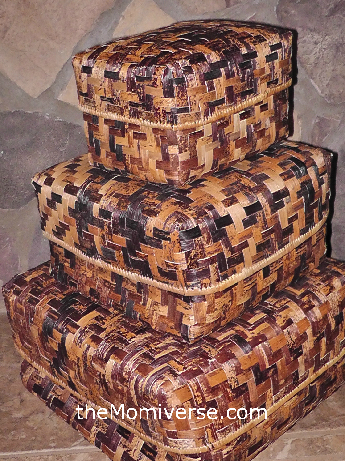 I received a set of three Woven Banana Boxes. My mom is from Vietnam and banana leaves are such a big part of the Vietnamese landscape, culture and food. Although these boxes were handcrafted on a completely different continent, I love that they remind me of my own Mom – one of the strongest and most generous women I know. These baskets help me organize a room, but they also provide a raw, organic texture in my family room which has lots of rock and tile. The shades of brown are warm, deep and rich.